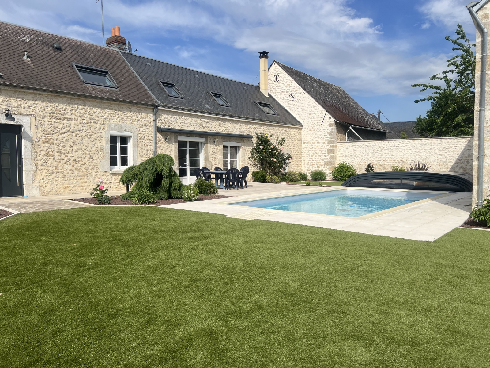 Chartres (28000)AVIRON IMMOBILIER vous propose à la vente à 25 Km de CHARTRES dans un environnement calme et verdoyant, cette maison qui allie confort et cachet authentique. La bâtisse principale d'environ 210 m² se compose d'un vaste séjour avec cuisine aménagée ouverte, un grand salon avec son poêle à bois, 4 spacieuses chambres dont une suite parentale avec salle d'eau privative, une salle de bains et un beau palier faisant office de bureau. A quelques pas de la maison une maison d'amis d'environ 46 m². Terrasse avec accès à la piscine couverte et chauffée, une dépendance aménagée en salle de jeux, une grange et un préau complètent ce bien. Un jardin paysagé sans vis à vis s'étend sur 2485 m².