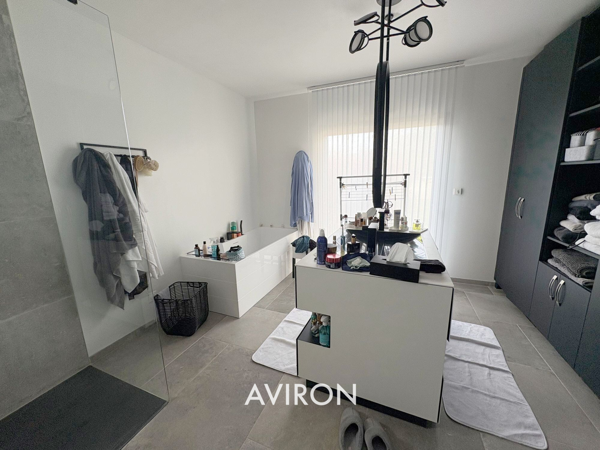 L'entrée dessert un spacieux séjour-salon avec sa cheminée de 70 m² ouvert sur la cuisine équipée et aménagée, vous aurez un accès direct sur la terrasse de plus de 50 m² plein sud, suite parentale.