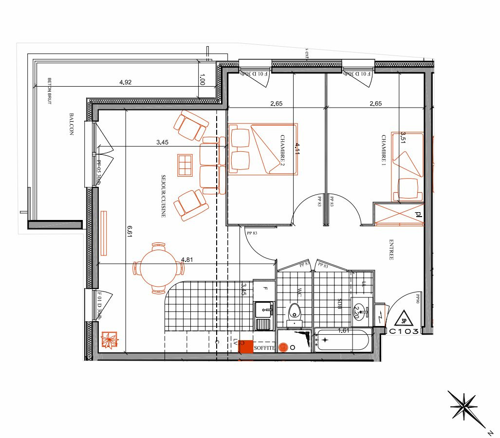 Surface habitable (m²) 60,25 m²